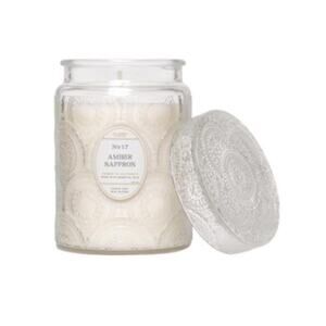 Leoben Co Amber Saffron Vegan Soy Wax Candle Glass Faceted 18oz Jar 80 Hr Burn