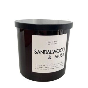 This vegan soy candle offers a rich blend of sandalwood and musk, creating a calming ambiance. Hand-poured in Southern California, it includes premium essential oils.