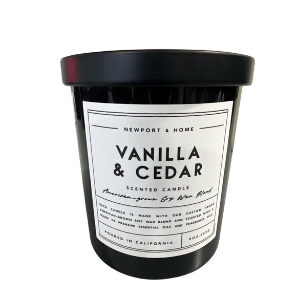 Leoben Company Vanilla Cedar Candle 9 Oz 1-Wick Black Jar Soy Wax Blend Vegan