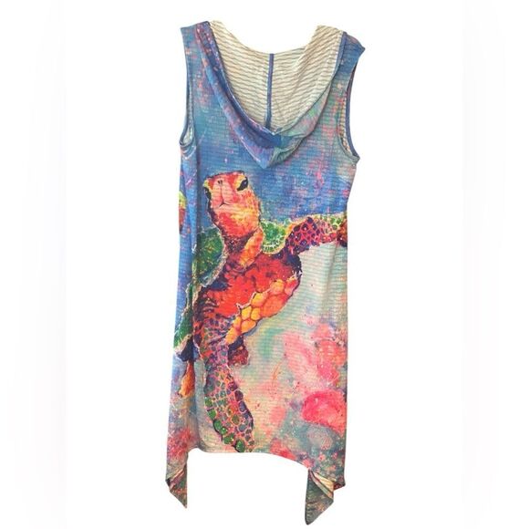 Leoma Lovegrove L Blue Large Colorful Sea Turtle Hoodie Beach Swim Cover Dress
