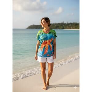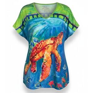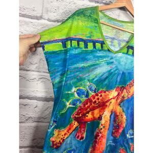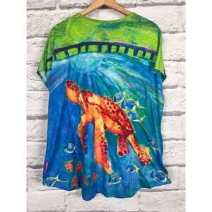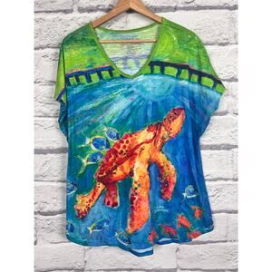 Leoma Lovegrove Women XXL Artsy Coastal Tropical Maximalist Sea Turtle Tunic Top