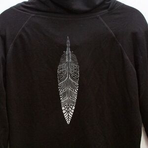 Leon Designs Bambou Cowl Neck Sweatshirt Owl & Feather Graphic XL Goth Grunge Emo Keyhole Long Sleeves Feather Metal Zippers