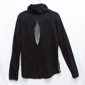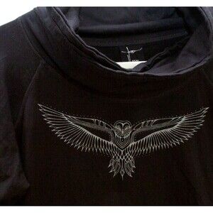 Leon Designs Bambou Cowl Neck Sweatshirt Owl & Feather Graphic XL Goth Grunge