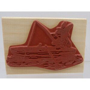Leon Gone Fishin' by Susan Wheeler, Holly Pond Hill Inter Art, Uptown Stamp. A whimsical animal-themed wood and rubber stamp featuring charming artwork.