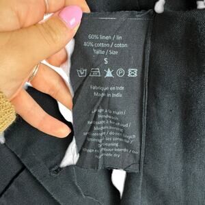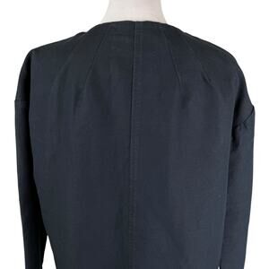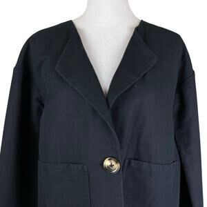 Leon & Harper Black Linen Cotton Blend Collarless Relaxed Boxy Blazer Jacket