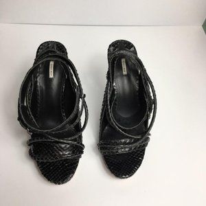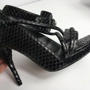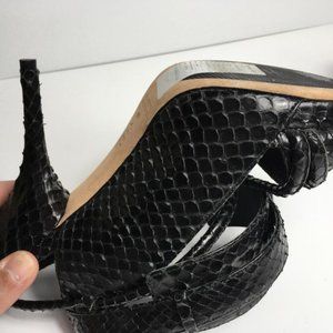 Leon Max Espouse genuine black snake skin sandal in a size 9. These feature a wrap abound ankle strap that makes these shoes extra sexy.