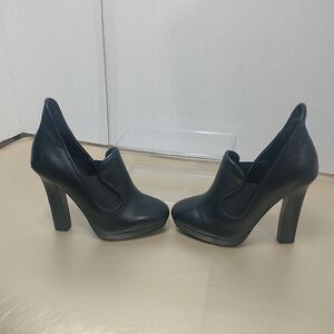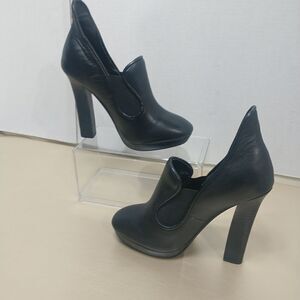 Leon Max Black Women's SZ 6.5M Leather Upper Closed Toe Block Heeled Shoes