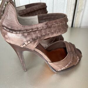 Leon Max Braided Leather Peep Toe Heels Distressed Brown Size 9