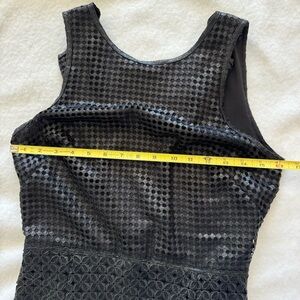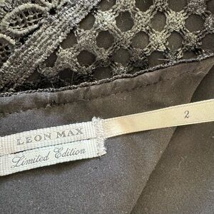 One of a kind show piece from Leon Max. Size 2. Pit to pit about 16”. Length about 37”. See through (no lining material) last 2”. Zipper in the back. Color black with metallic sheen. Excellent pre-owned condition! Only worn few times. Smoke free home.