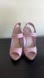 These are new but do have a minor defect in the front of the shoe the one has an indent in the wood as shown in photo. They are fine leather and a pink color. Retailed for 98.00