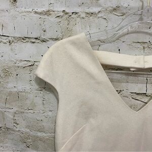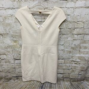 Leona Lauren Leonard Womens Sz 0 Cream Cap Sleeve Wool Sheath Gold Button Dress in good used condition. No stains, tears or rips. Measurements: laid flat Underarm to underarm: 16.5” Length: 33”