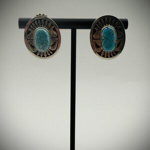 Leonard Nez Navajo #8 Turquoise Overlay Earrings, 1" (15g) – Signed
