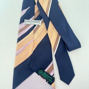 Leonard Paris Necktie Tie Silk Italy NAVY MULTI