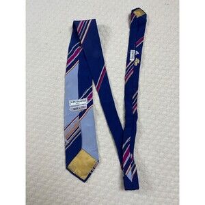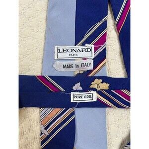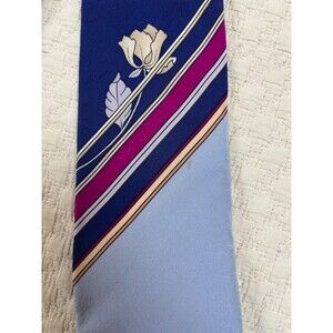 Leonard Paris Silk Floral Tie Wide Stripe Vintage 1980s Blue Pink 54"L 3.5"W