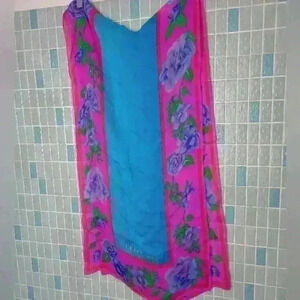 Leonard Paris Vintage Floral Silk Scarf Blue Pink. Previously worn condition.