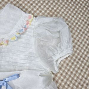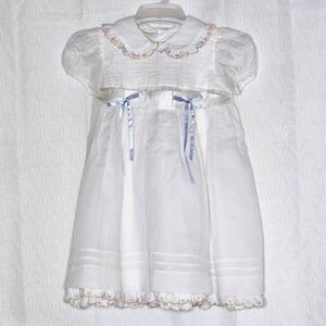 Leonarda Designs White Organza Overlay & Embroidered Cotton Puff Sleeve Dress