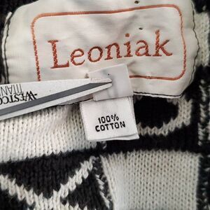 Leoniak Sweater S Fringe Rolled V Neck Black White Check XO Geometric Preppy