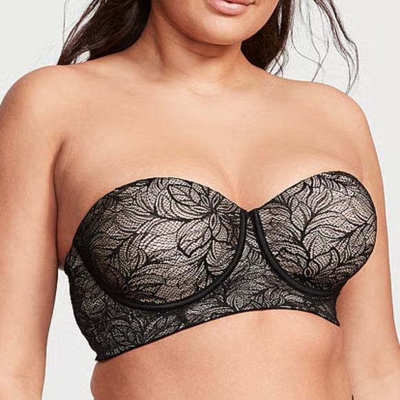 Leonisa Black Lace Firm Compression Strapless Lace Longline Bra
