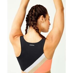 Leonisa Peach White & Black Stripe High Neck Maximum Support Sports Bra Top S