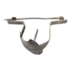 Crafted from sterling silver, this Leonore Doskow handmade tie bar clip embodies mid-century modern design. Elevate your attire with its refined, artistic flair, offering both functionality and style. The intricate detailing showcases exceptional craftsmanship, making it a distinguished choice for those who appreciate fine accessories.