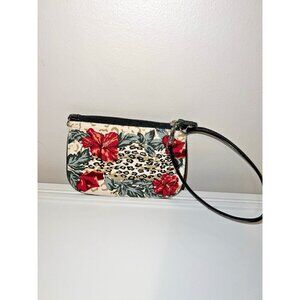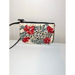 Leopard Animal Print Hibiscus Faux Leather Handle Trim Wristlet Wallet