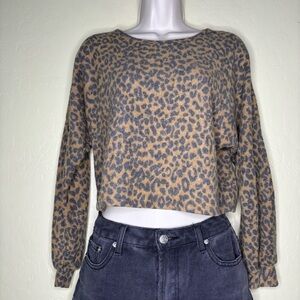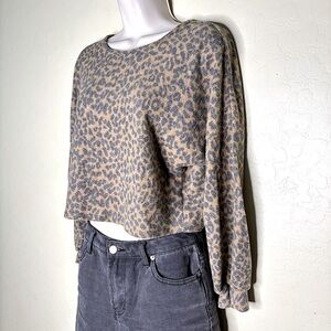 Leopard Animal Print Long sleeve Cropped Top Shirt Nwot Size Small S