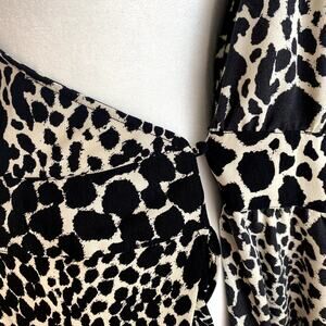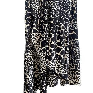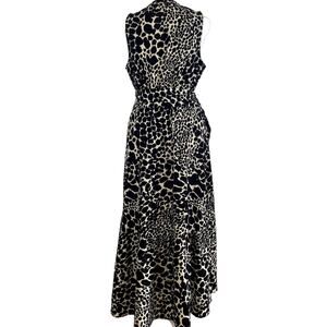 Leopard Animal Print Midi Wrap Dress Womens S Ruffle Hem Sleeveless Fall Neutral
