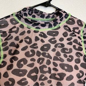 Leopard Animal Print Mock Neck Long Sleeve Bodysuit Size Medium Fits Small