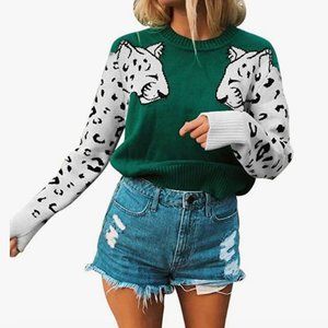 Leopard Arm Crew Neck Sweater