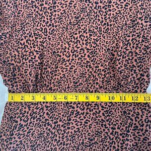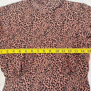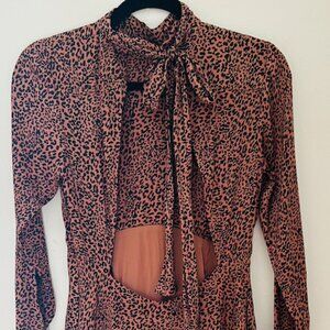 Who doesn't adore a backless dress? This Free People dress is backless with an empire waist - very 1930s or 1940s silver screen star. It's 100% rayon but feels very silky and flows beautifully. The sleeves have buttons covered in the same tiny leopard print fabric.