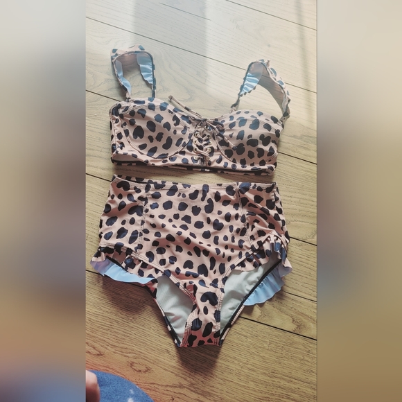 Flutter/Ruffle details High Rise Bottoms Lace detail on top Never worn
