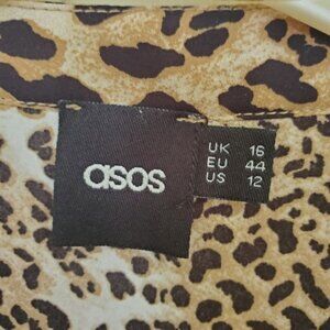 Leopard Blouse by ASOS. Beautiful animal print blouse, it's a neutral, goes with anything! Button cuffs. Roll Tab sleeve option. Faux wrap,front flap detail, full front, no skin shows. Size 12. EUC