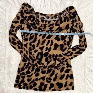 Leopard Blouse Size Small Long Sleeve Scoop Neck Women's, see measurements for size,