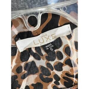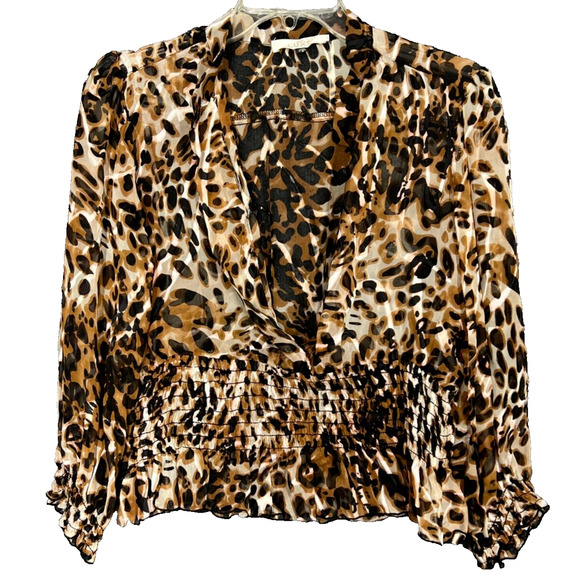 Leopard Blouse Womens Small Cropped Ruched Black Gold Tan Safari Boho Hippie
