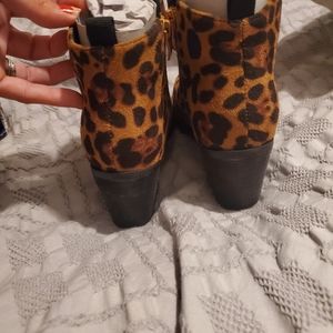 Super soft leopard booties. With a 2 inch block heel. Zipper up the side.