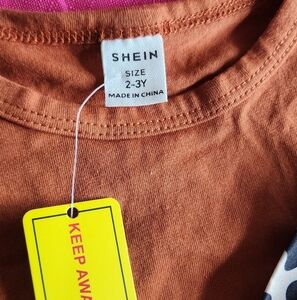 Adorable toddler outfit set with leopard bow accents. Includes a top and flared pants in a warm brown color.