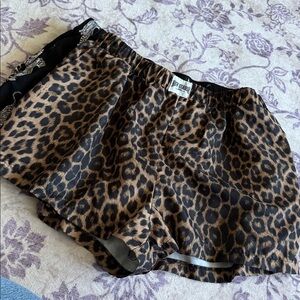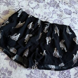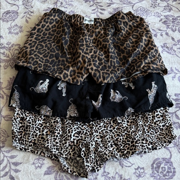 Set of three shorts with leopard and tiger prints. Features brown, black, and white colors.