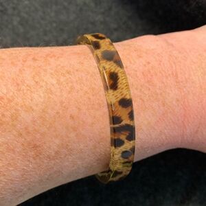 Leopard bracelet made of hard durable plastic with small opening to allow for ease of use.