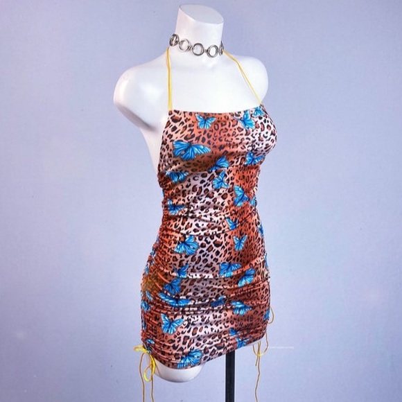 🦋 Leopard Butterfly Ruched Mini Dress