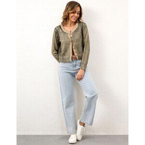 Leopard Cardigan Women Long Sleeve Button Up Knit Sweater Cheetah Print