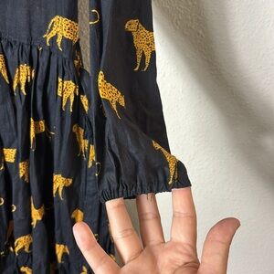 Leopard Cheetah Animal Pattern Print Black Yellow Partial Button Down Dress size Medium.