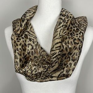 Leopard Cheetah Animal Print Gold Metallic Made In Italy Shimmering Scarf flaws OS