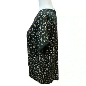 Leopard Cheetah Paw Print Blouse Black and Gold Size L