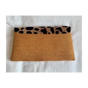 Woven clutch with suede textured leopard flap. Big enough for the things you need, small enough to carry comfortably. Never used.