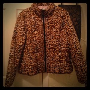 Leopard Coat, 100% polyester, large, front zip closure, pockets