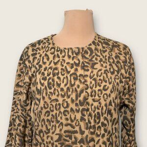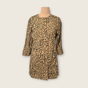 Leopard Coat Jacket Small Midi Twill 3/4 Sleeves Simple Collar 2000s EUC