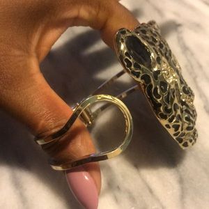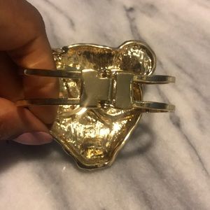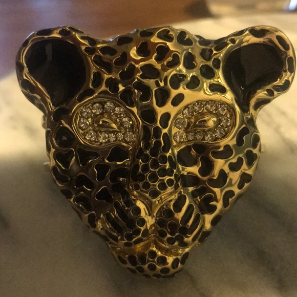 Stunning statement piece. Bought in a boutique in NYC. Oversized leopard face cuff with rhinestone eyes in gold metal. Easy large open clasp. Brand new without tags. Comes with mesh bag.