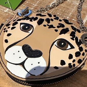 Chic and playful women's coin purse featuring a leopard face design. Perfect for adding a touch of fun to any outfit. NWT. see pics for details.