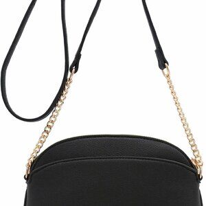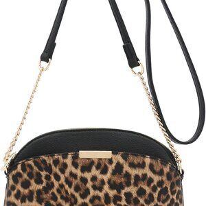 Features: Compact faux leather crossbody with a fierce leopard print pattern and gold-tone hardware. Zipper closure keeps your essentials secure, and multiple pockets including front, rear slip, and zipper compartment add organization. The adjustable strap extends from 47" to 53" for a comfortable, customizable fit.