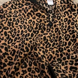 1/4 zip top, leopard fleece, cinched hem and cuffs, front kangaroo pocket